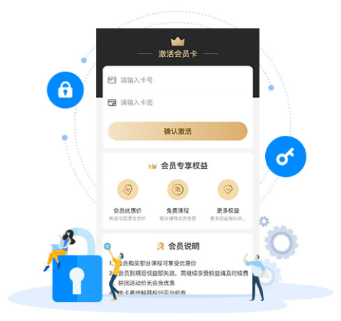 系統生成卡密,客戶可根據卡密兌換會員,不同會員期限生成不同卡密。